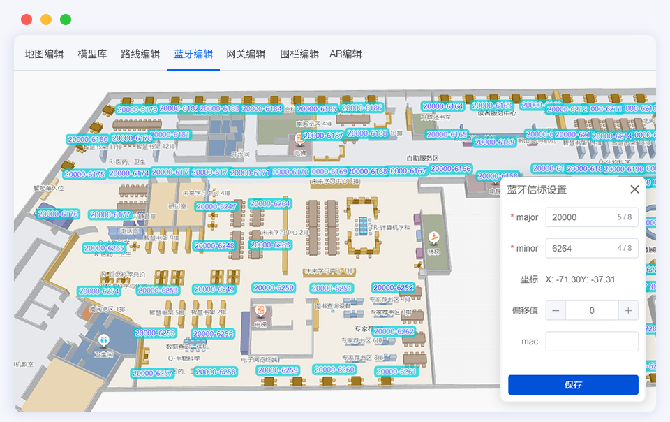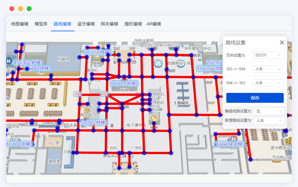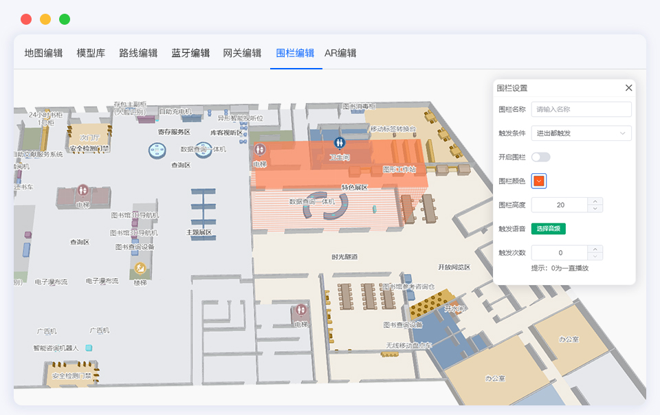 维小帮运用Three.js 3D 渲染技术,自主研发国产化的室内地图引擎,具备POI标记、路线规划、地图编辑、模型库等模块化功能,实现0基础快速绘制室内地图。