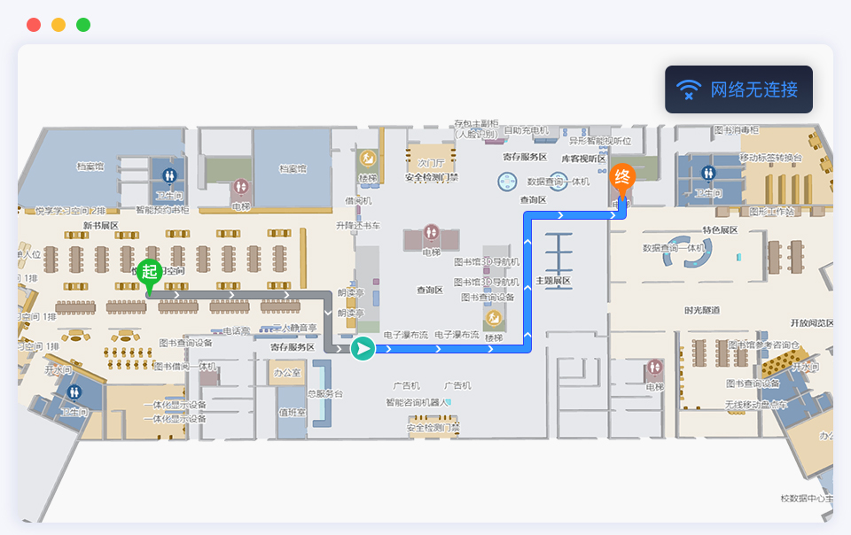 支持离线部署,实现在无网络、无信号、无定位的环境内运行,正常使用地图、导航、路线规划等功能