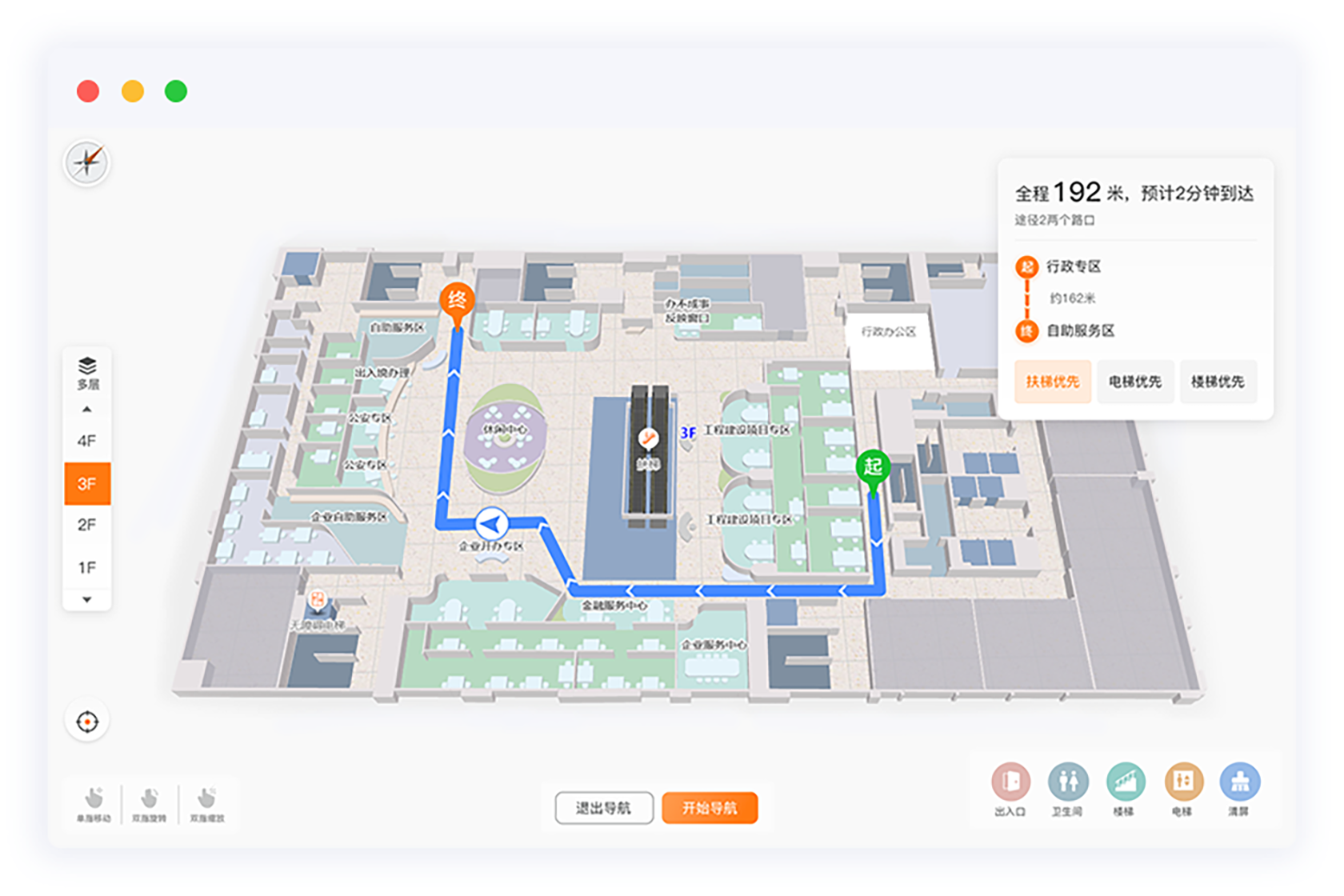 维小帮运用vue3框架结合Three.js库和.net core C#"技术,自主研发国产化室内地图引擎和室内定位引擎,提供室内导航、AR导航、VR导航、AI问答导航等功能,解决室内方位识别困难、寻路耗时长的问题,帮助用户在复杂的室内环境下快速找到目的地。