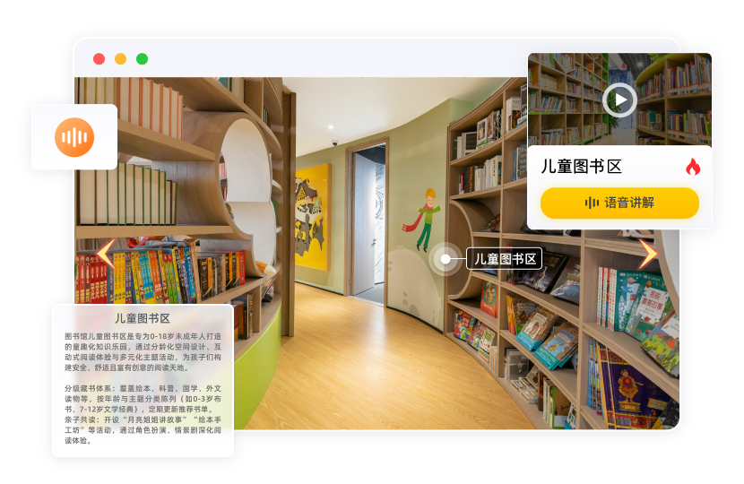 通过3D数字人形象为读者提供自动触发、多语言、可互动的智能讲解服务,让导览更生动有趣。支持数字人形象定制、卡通IP建模。