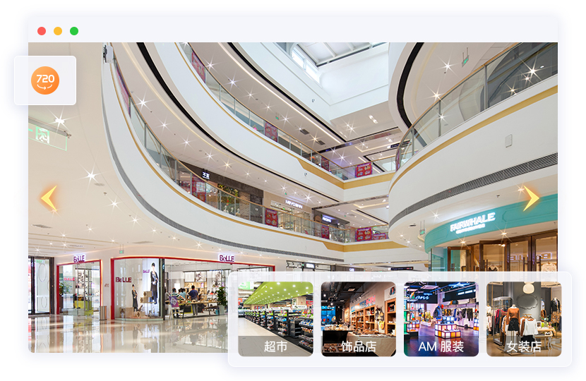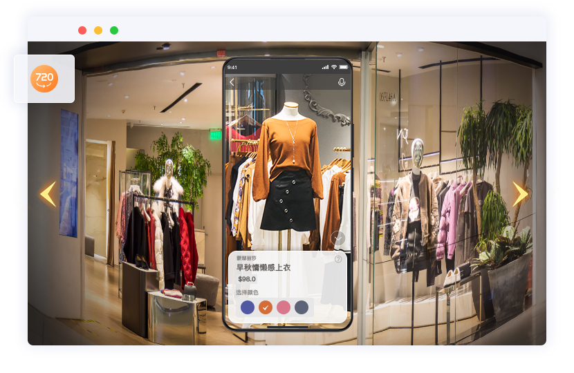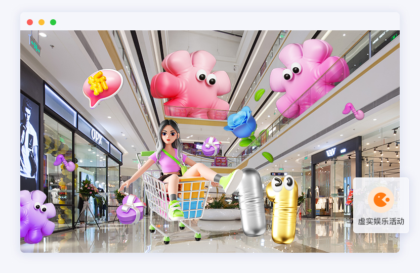 现实场景画面中叠加AR品牌优惠券、AR红包、AR探宝游戏等购物引导互动元素。