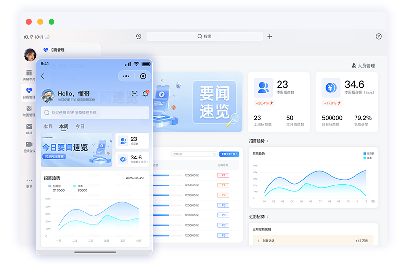 移动端招商工具与web端数据同步,支持跨平台多人协作招商,数据更新同步上传平台,便于领导同事获知招商进展。